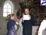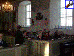 Alf (prästen) kollar att alla sitter bekvämt |