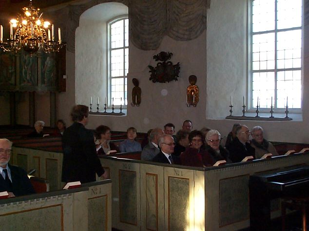 Alf (prästen) kollar att alla sitter bekvämt