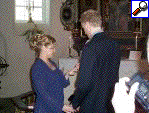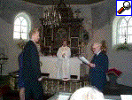 Alf (prästen) kollar att alla sitter bekvämt |